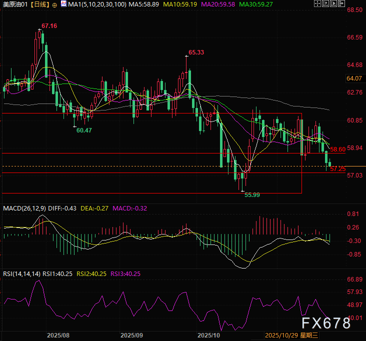 草案尚未落地,但油价已经开始反应,油价跌至近期低点附近,跌破58.60的支撑。